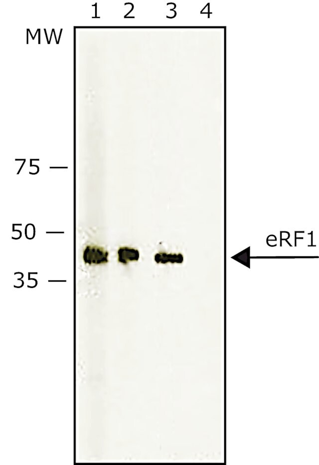 | Biochem/physiol Actions【生化/生理作用】 | Eukaryotic translation termination factor 1 (eRF1) proteins are directly implicated in the termination of translation in eukaryotes. It plays an important role in the termination of protein synthesis, which is performed by three domains (N, M and C) of eRF1. Rearrangement in eRF1 leads to N-domain accommodation into the ribosomal A site. |