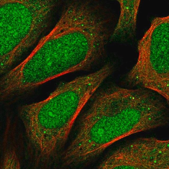 | Application【应用】 | All Prestige Antibodies Powered by Atlas Antibodies are developed and validated by the Human Protein Atlas (HPA) project (www.proteinatlas.org)and as a result, are supported by the most extensive characterization in the industry.  The Human Protein Atlas project can be subdivided into three efforts: Human Tissue Atlas, Cancer Atlas, and Human Cell Atlas. The antibodies that have been generated in support of the Tissue and Cancer Atlas projects have been tested by immunohistochemistry against hundreds of normal and disease tissues and through the recent efforts of the Human Cell Atlas project, many have been characterized by immunofluorescence to map the human proteome not only at the tissue level but now at the subcellular level. These images and the collection of this vast data set can be viewed on the Human Protein Atlas (HPA) site by clicking on the Image Gallery link. To view these protocols and other useful information about Prestige Antibodies and the HPA, visit sigma.com/prestige.  |