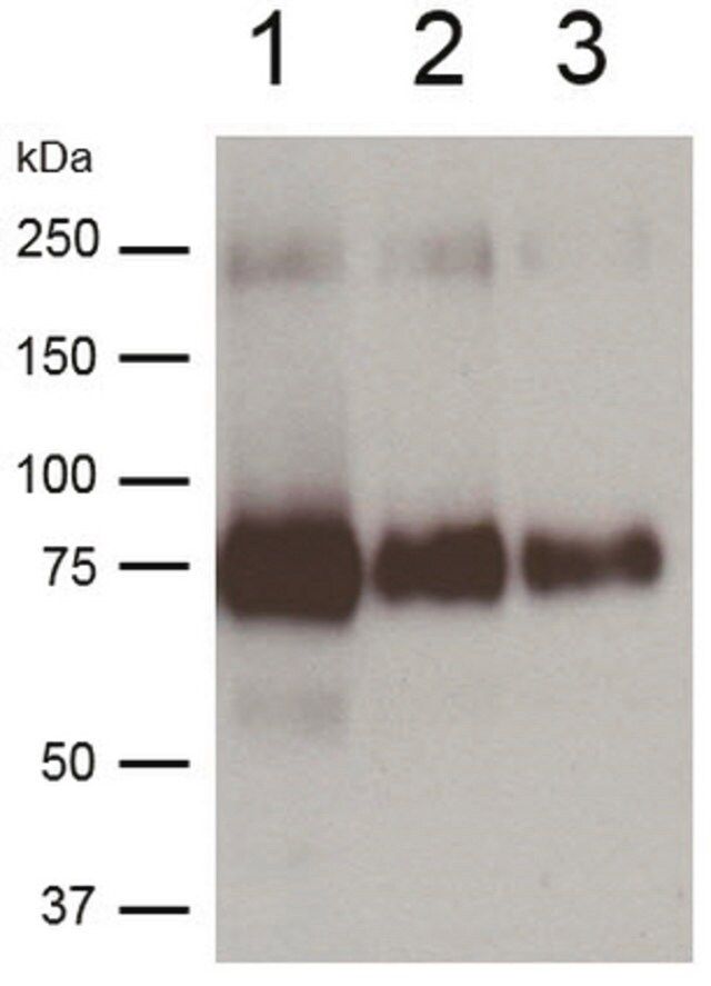| Physical form【外形】 | Purified rabbit polyclonal antibody in buffer containing 76 mM Tris, 192 mM glycine, pH 7.4 with 0.05% sodium azide. Format: Purified Affinity Purified |