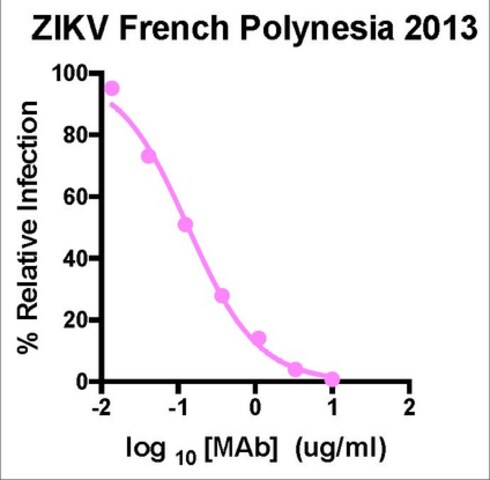 | Application【应用】 | This mouse monoclonal Anti-Zika Virus, clone ZV-54, Cat. No. MABF2046 is tested for use in Western Blotting, Neutralizing, and Flow Cytometry, for the detection of Zika virus envelope protein. Flow Cytometry Analysis: A representative lot detected Zika Virus in Flow Cytometry applications (Zhao, H., et. al. (2016). Cell. 166(4):1016-27). Neutralizing Analysis: A representative neutralized Zika Virus in Neutralizing applications (Zhao, H., et. al. (2016). Cell. 166(4):1016-27). Neutralizing Analysis: A representative lot detected Zika Virus in ZIKV H/PF/2013 (French Polynesia, 2013) (Courtesy of Dr. Michael Diamond, M.D., Ph.D., Washington University School of Medicine, St. Louis, MO USA). Research Category Inflammation & Immunology |