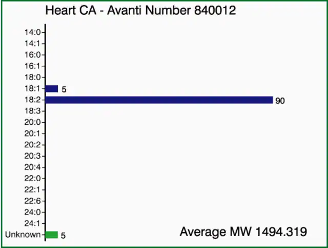 | Application【应用】 | Heart CA has been used as a standard stock solution for its quantitative analysis using liquid chromatography−mass spectrometry (LC-MS)/MS. It has also been used for liposome preparation. |