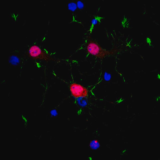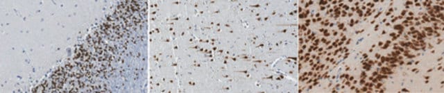 | Application【应用】 | 研究类别 神经科学 免疫细胞化学分析:一个代表性批次以 1:500 的稀释度在培养的胚胎 E18 大鼠海马神经元中检测到 NeuN。 免疫组化分析:一个代表性批次以 1:500 的稀释度在人(小脑和大脑皮层)和小鼠(海马)脑组织切片中检测到 NeuN 阳性神经元。 免疫细胞化学分析:一个代表性批次免疫染色 4% 低聚甲醛固定的蜗牛脑中分离而来的神经元(Nikolić, L., et al. (2013).J. Exp.Biol. 216(Pt 18):3531-3541)。 免疫荧光分析:代表性批次在 4% 多聚甲醛灌注的小鼠的冷冻脑切片中检测到 NeuN 阳性神经元(Cherry, J.D., et al. (2015).J. Neuroinflammation.12:203; Huang, B., et al. (2015).Neuron.85(6):1212-1226.; Jia, G., et al. (2013).PLoS One.8(11):e81744)。 免疫荧光分析:一个代表性批次在福尔马林固定和石蜡包埋的肌萎缩性侧索硬化(ALS)人脑组织切片中检测到 NeuN 阳性神经元(Fratta, P., et al. (2015).Neurobiol.Aging.36(1):546.e1-7)。 免疫组化分析:一个代表批次在大鼠脑组织切片中检测到 NeuN 阳性神经元(Mendonça, M.C., et al. (2013).Toxins.5(12):2572-2588)。 蛋白质印迹分析:代表批次在小鼠和大鼠脑组织裂解物中检测到 NeuN(Huang, B., et al. (2015).Neuron.85(6):1212-1226; Mendonça, M.C., et al. (2013).Toxins.5(12):2572-2588)。 该兔多克隆抗体也可作为 Alexa Fluor® 488(ABN78A4)、生物素(ABN78B)和 Cy3(ABN78C3)缀合物,用于免疫细胞化学、免疫荧光、免疫组化应用。 研究子类别 发育信号转导 抗 NeuN(兔)抗体,货号 ABN78 是一种高度特异性的兔多克隆抗体,靶向 NeuN,已在免疫细胞化学、免疫荧光、免疫组化和蛋白质印迹中进行了测试。 |