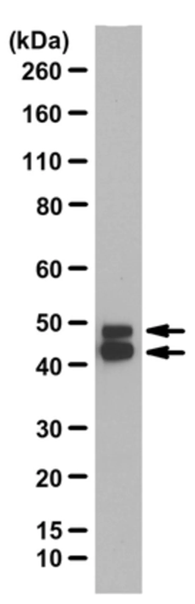 | Target description【目标描述】 | 观测值〜48/42 kDa。33.87/35.12 kDa(人同工型 1/2),40.61/39.05/35.64/34.07/35.63 kDa(小鼠同工型 1/2/3/4/5),40.59kDa(大鼠;UniProt D4A2H6),34.05 kDa(大鼠;UniProt A0A0G2K2J4)。在某些裂解物中可以观察到未鉴定的条带。 |