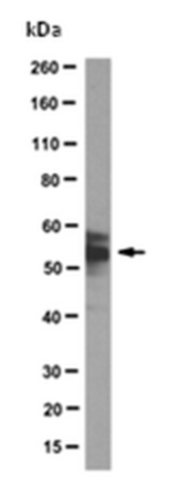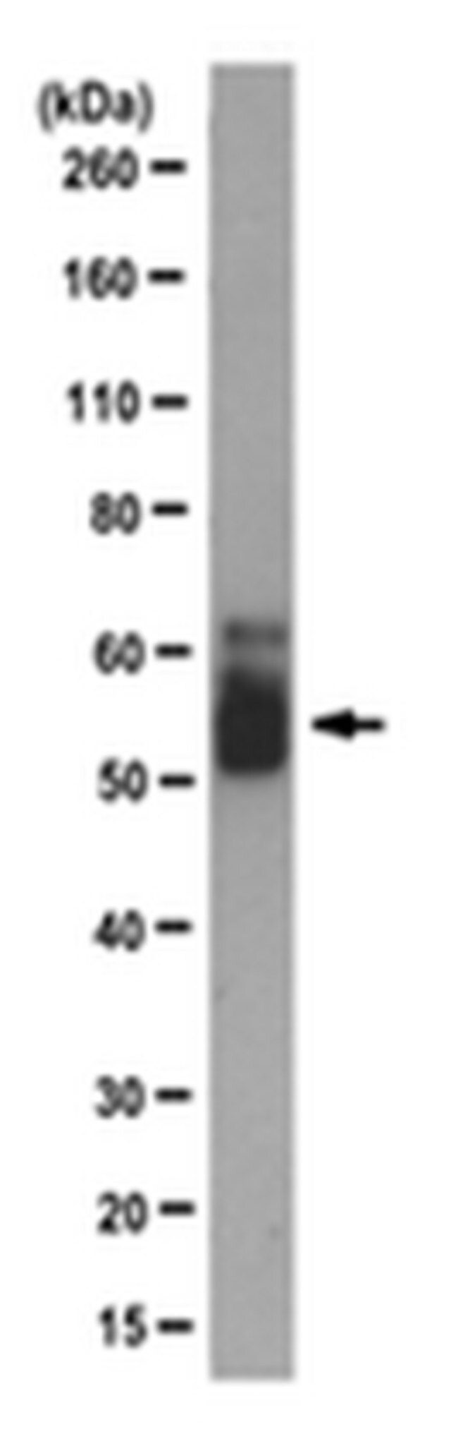 | Target description【目标描述】 | ~55 kDa observed. Many isoforms are known to exist between 35-80 kDa An uncharacterized band may be observed in some cell lysates. |