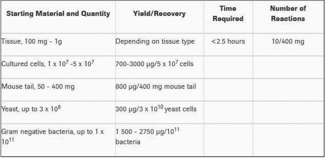 | Application【应用】 | 用于细胞和组织的 DNA 分离试剂盒已用于从各种各样的起始物料中分离 DNA。分离的 DNA 适用于许多分子生物学应用: