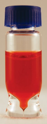 Applications include: Library sample storage, Lyophilize, Centrifugation, Micro mixing, Extraction, Concentrations, Derivatization, Hybridization, Homegenization, Small scale reactions, Liquid/liquid extraction The CD™ Vial (Center Draining) has a unique conical interior bottom that allows the contents to completely drain to the center bottom of the vial. Maximum recovery of the contents can be done utilizing either a micropipette or syringe. The sturdy CD Vial with the patented unique conical well, located at the exact center of the vial bottom, is ideal for many micro applications. The vials are manufactured from Borosilicate Type 1 glass to safeguard against a change in the pH of the contents. Precision: Limited volume injections with less than 4 μL dead volume. Large opening: Eliminates bent need problem associated with limited volume inserts. Library: Maintain library samples. They will withstand -70℃ to 160℃. Concentrate samples in the same vial that you use in autosampler. Applications: Library sample storage Lyophilization Centrifugation Micro mixing Extraction Concentrations Derivatization Small scale reactions |