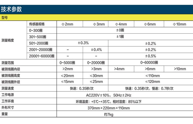 ●微处理器控制全部功能数学化操作简单、无需量程转换自动显示被测圈数